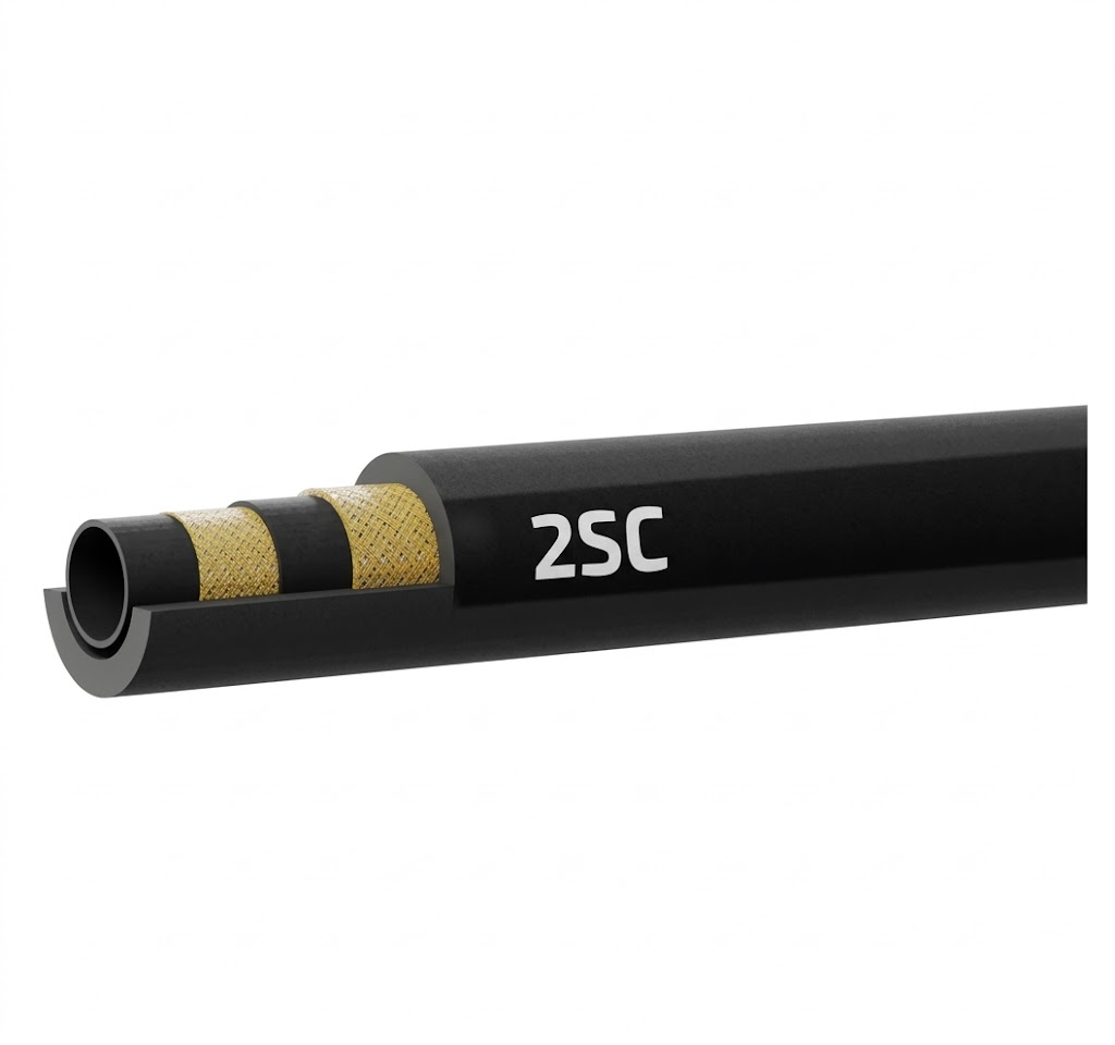 Il tubo flessibile trecciato a norma COMPACT FLEX EN857-2SC è un tubo flessibile per sistemi oleodinamici per media e alta pressione, caratterizzato da una struttura compatta con due trecce di acciaio ad alta resistenza, progettato per applicazioni che richiedono raggi di curvatura ridotti rispetto ai tubi standard (come il tipo 2SN), rendendolo ideale per spazi ristretti su macchinari industriali e agricoli. Con pressioni di esercizio da 165 a 400 bar