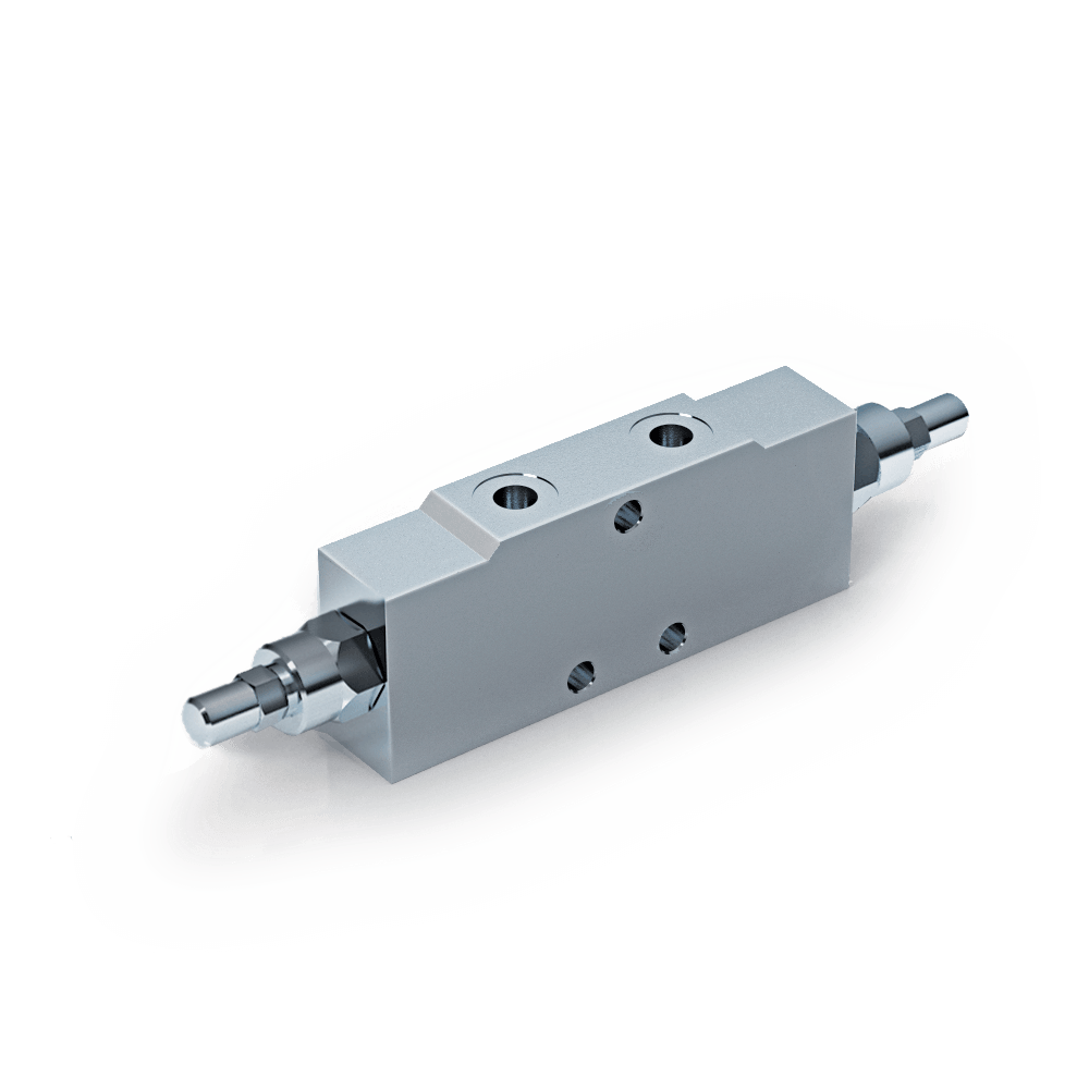 Valvola utilizzata per controllare il movimento e il blocco dell’attuatore in entrambe le direzioni realizzando la discesa controllata del carico che non sfugge trascinato dal proprio peso, in quanto la valvola non consente alcuna cavitazione dell’attuatore. Il tipo “A” si differenzia dal tipo “ non A” per la posizione degli attacchi e per il rapporto di pilotaggio.