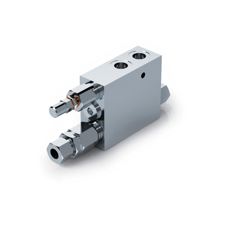 Valvola realizzata per l’impiego su cilindri per aratri reversibili, in modo da ottenere l’inversione automatica del flusso d’olio e quindi del moto del cilindro idraulico atto a portare in rotazione l’aratro. È dotata di una valvola di blocco a doppio effetto che fornisce una maggiore sicurezza e dà la possibilità di posizionare e bloccare il cilindro in qualsiasi punto. L’inversione di marcia dell’asta del pistone si effettua tramite una valvola di massima pressione compensata esattamente nel punto morto dell’aratro, sviluppando maggiore potenza e velocità. Questa valvola può essere montata anche su aratri pesanti e sbilanciati con cilindri aventi i seguenti diametri interni: 40/50, 60/80, 80/100, 100/110 e 110/130 mm.